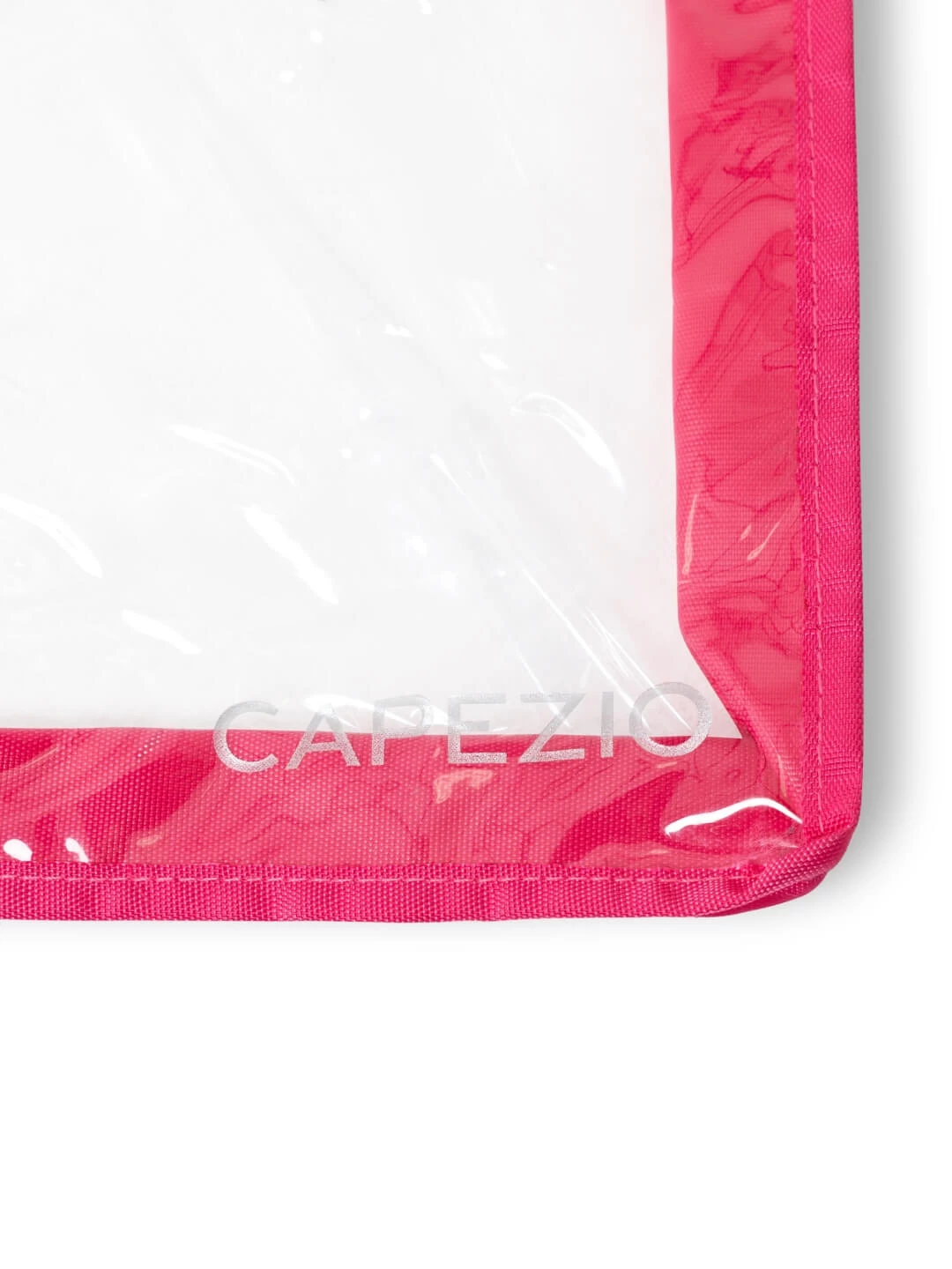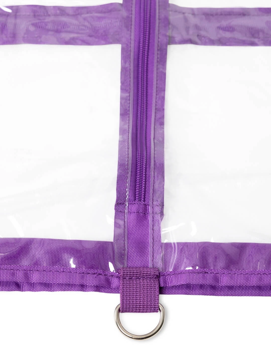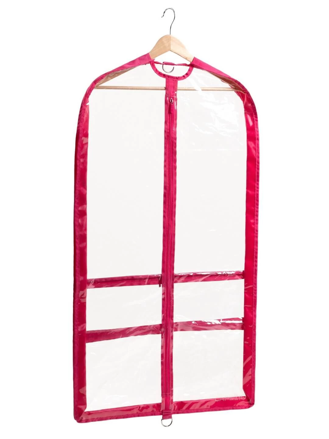 Made from 100% PVC and 100% Nylon, this garment bag is durable and long-lasting. The clear front and back design with colored trim allow you to easily identify your dancewear and costumes, while the full zipper closure ensures your garments stay in place.