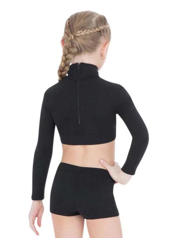Pair our turtleneck crop top with jazz pants for back-to-back dance classes or leggings for a fun, active look. Features include fitted long sleeves and reversible option for a zippered front or back. Hand selected for those who want to make a bold statement.