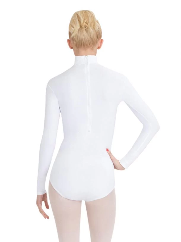 Coco Chanel knew best when she said, “Modesty is the highest elegance.” This reigns true when dancing in the Turtleneck Long Sleeve Leotard. This leotard features a modest turtleneck and zippered back. Made of a nylon and spandex blend that is soft and resilient. Long sleeves will keep you warm on cold studio days.