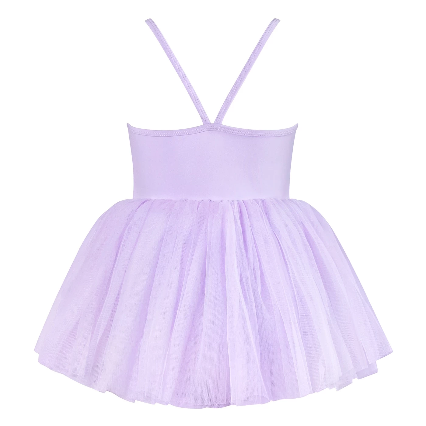 – Attached tutu skirt crafted with three layers of soft tulle for a voluminous ‘tutu look’