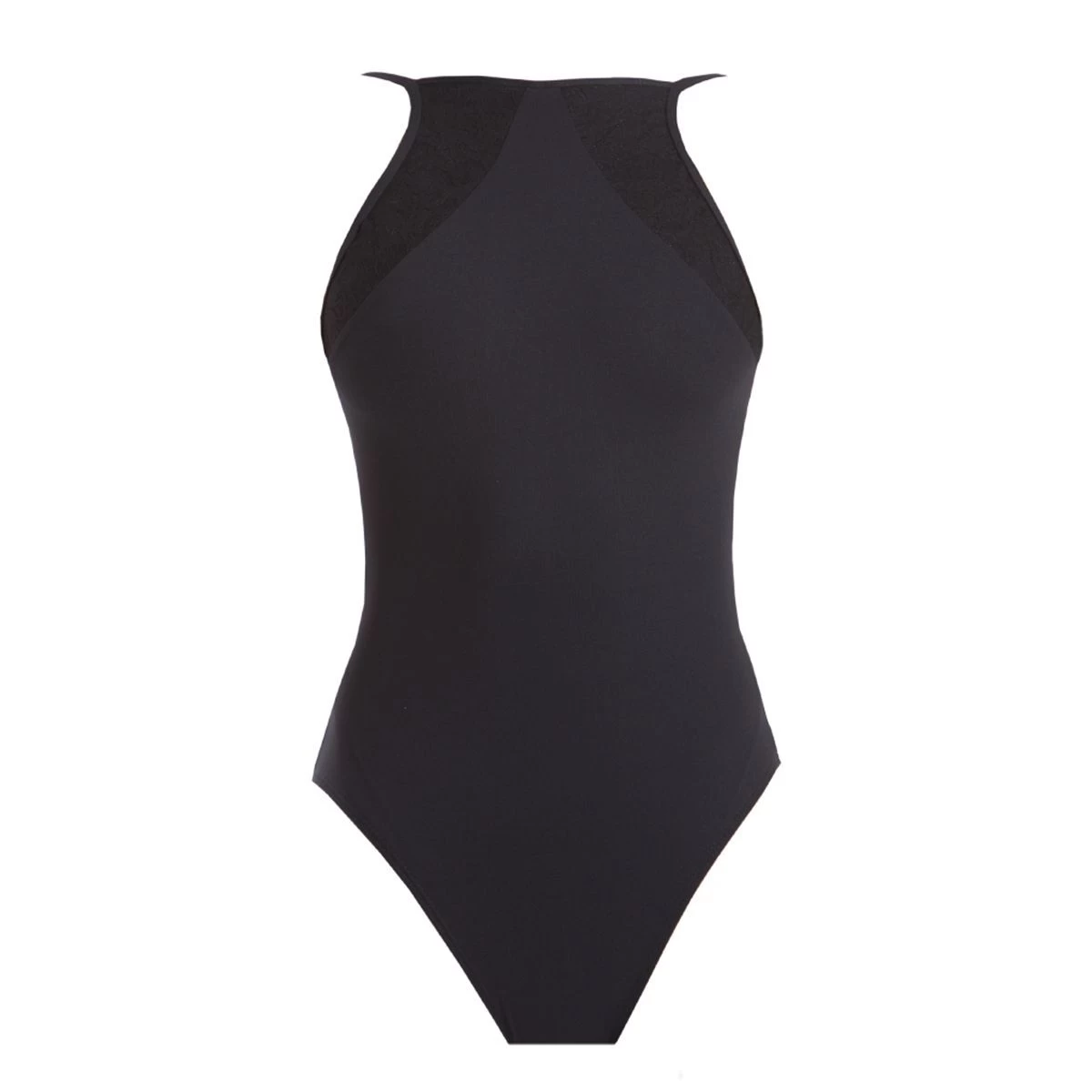 - Features a high neck line cut away at the shoulders for a contemporary aestheticÂ