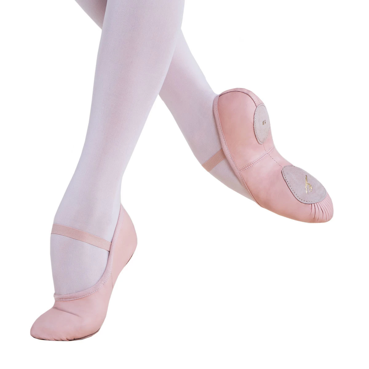 The Split Sole Ballet Shoe is designed to fit the contours of your foot. Why you’ll love it: – Supple, durable leather for long-lasting wear – Pre-attached elastic over instep – Enhanced aesthetic line and elastic drawstring for a supportive fit – Hugs your arch to enhance your line – All sizes are available in 4 widths, from narrowest to widest: A, B, C, D
