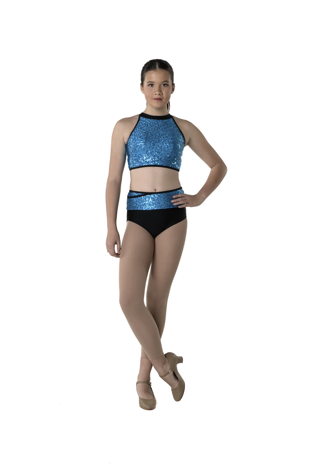 This gorgeous crop top is appropriate for all ages and has matching briefs to complete the look, perfect for performances and compeition costumes!