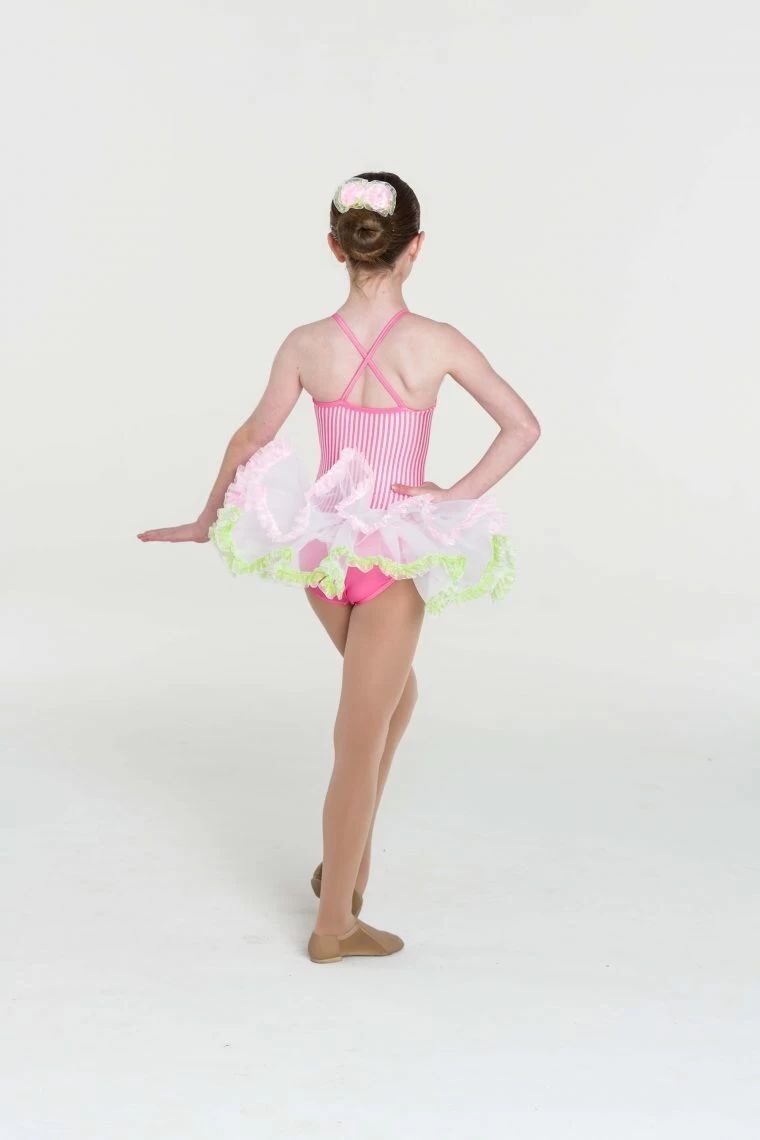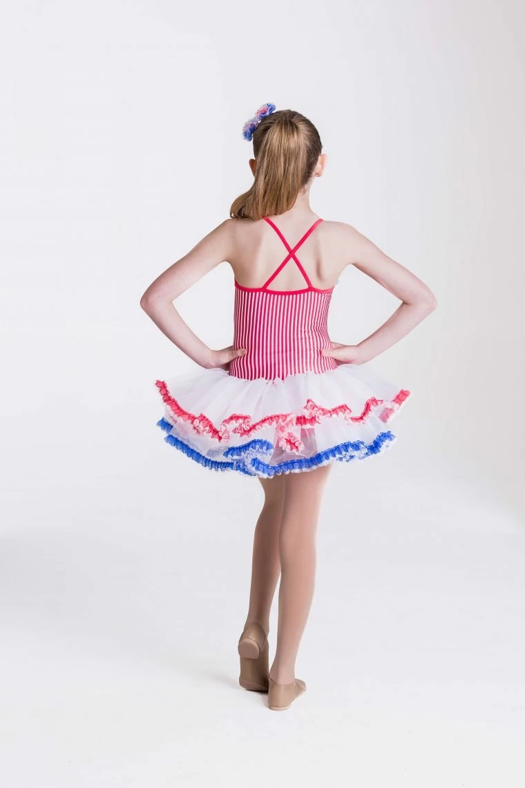 This fun candy girl dress with bustle & criss-cross back is a dress that will suit any dance. With hair accessory included. Available in red & candy.