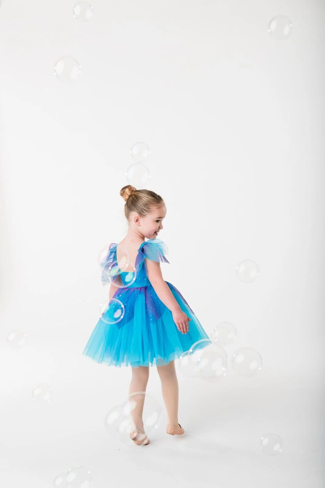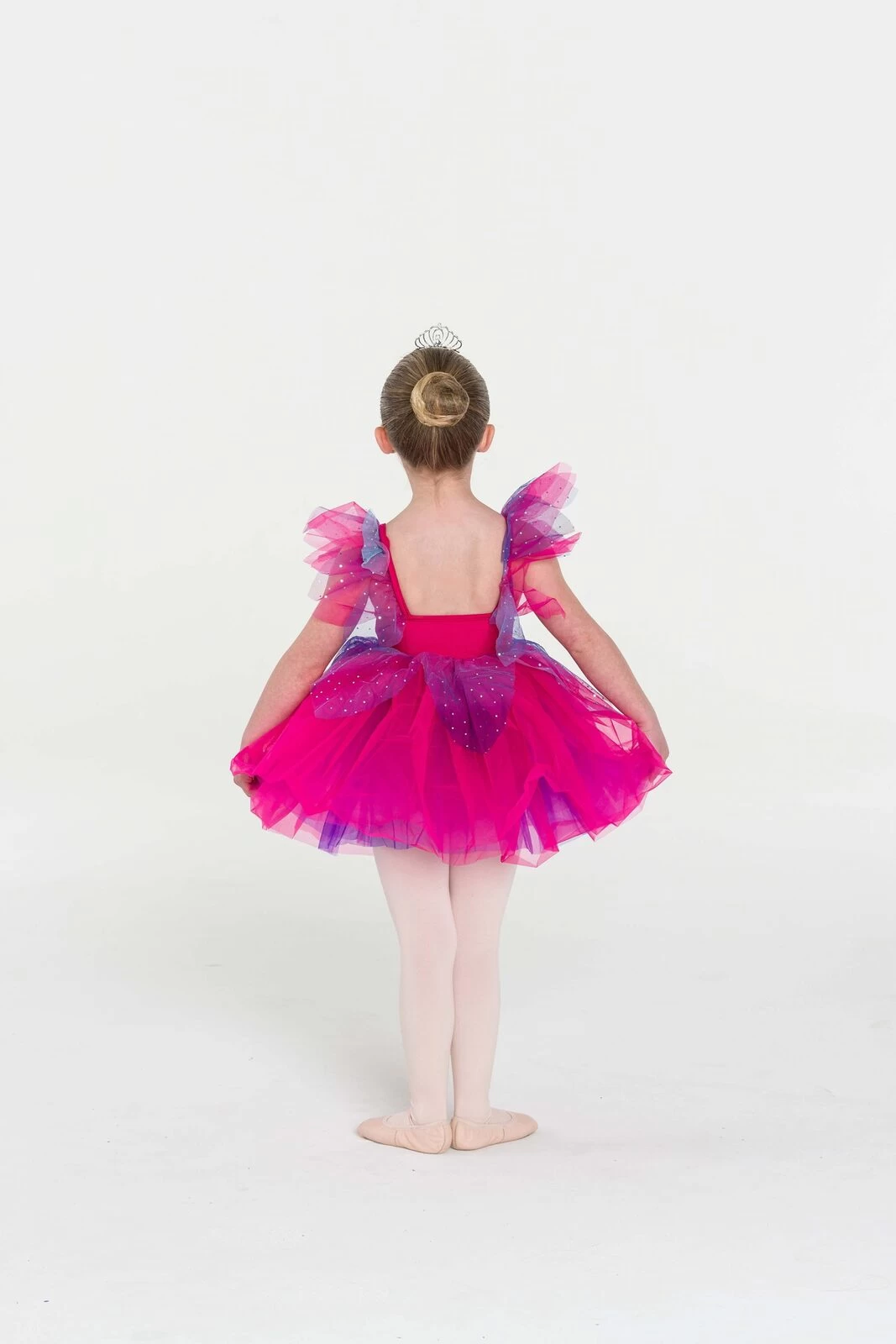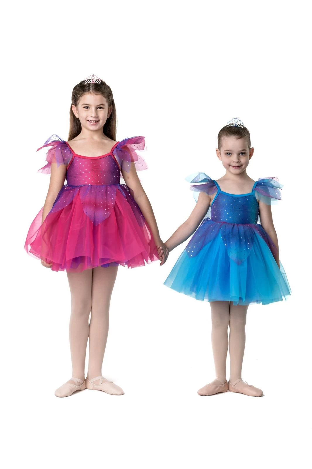 Nylon/LYCRA bodice, empire line bodice, tulle skirt. Available in Fuchsia and Turquoise. Fairy Doll Tiara included.