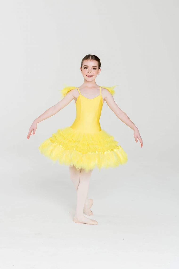 Nylon/LYCRA, four layers of tulle, feather overlay and shoulder detailing.