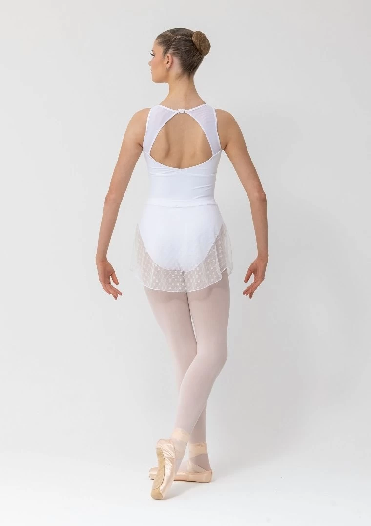 A beautifully delicate mesh patterned ballet skirt. Easy pull up design with elastic waistband.