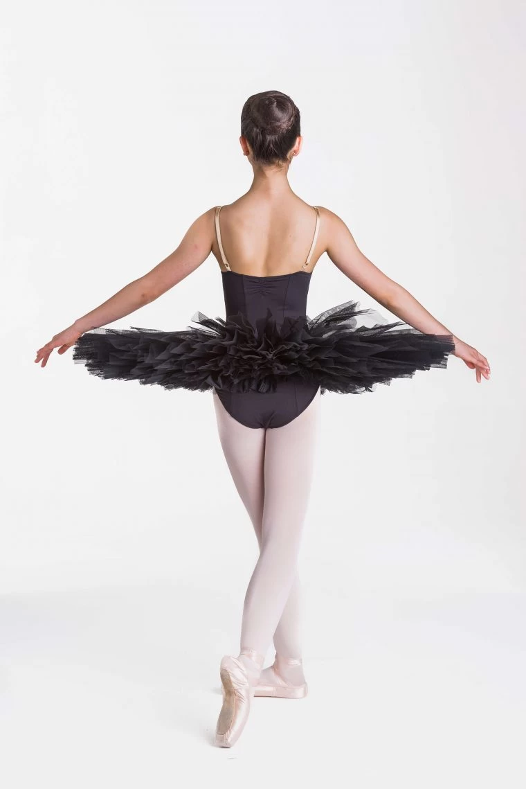 Princess line “V” TACTEL bodice, flesh adjustable straps, six layers of tulle for child sizes, seven layers of tulle for adult sizes. Tutu bag included!
