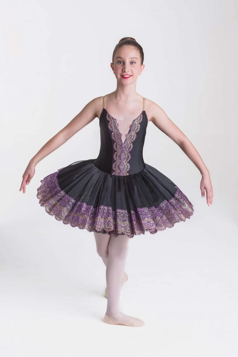The Royal Tutu is a classical design with sparkling lace embellishment on the front of the bodice and around the border of the bell-shaped, five layer skirt. It comes in four beautiful colour combinations.