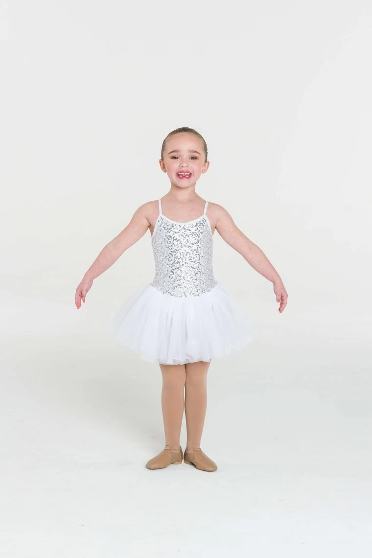 Sequinned Nylon/LYCRA bodice. Soft tulle skirt.