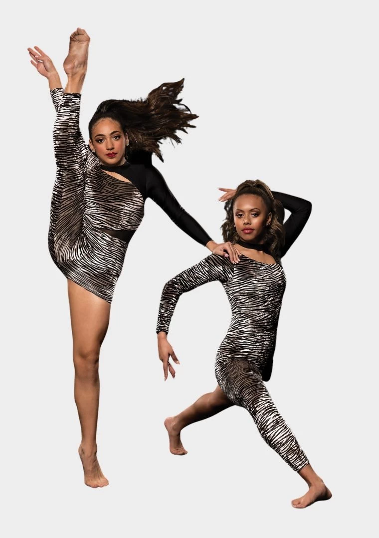 Go wild in this creative zebra print unitard. Featuring a velvet finish, flattering mesh cut outs, and asymmetrical design.