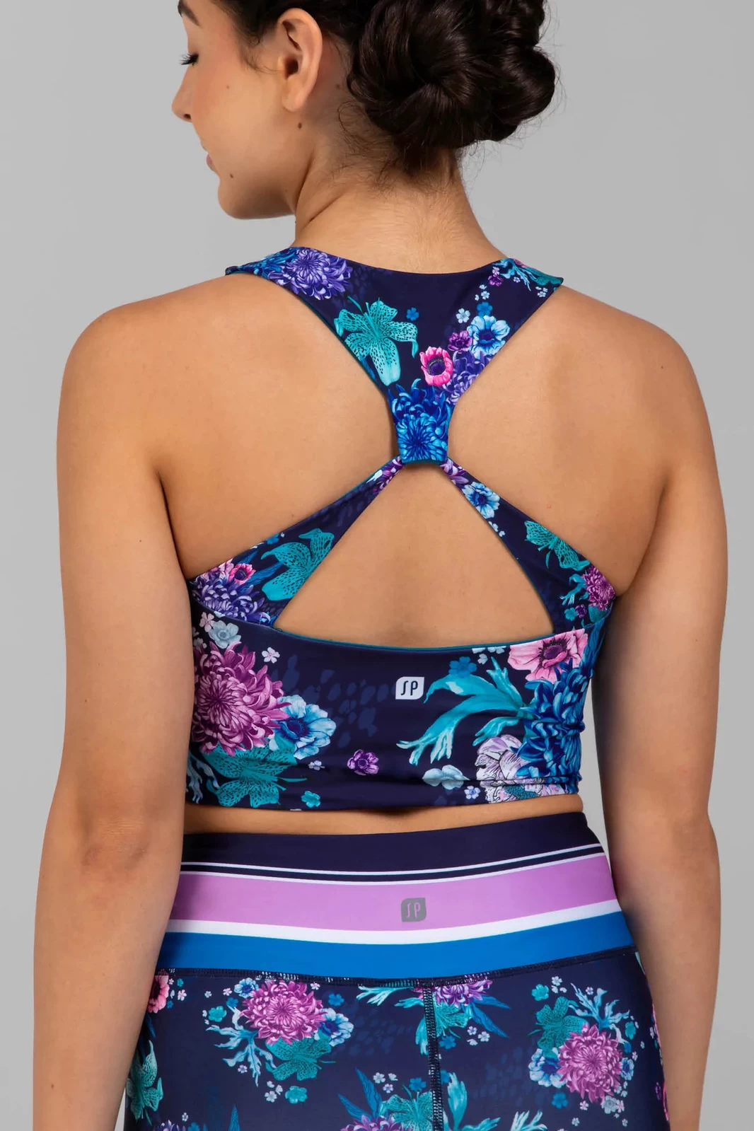 A reversible style for twice the fun. Made with an ocean-coloured wet look on one side and our signature floral Harmony Print on the other. On the back, straps loop together for a fem racer-back finish. Switch it up for whatever your style. Cropped slightly longer than your typical crop top, makes this style wearable for everyday.